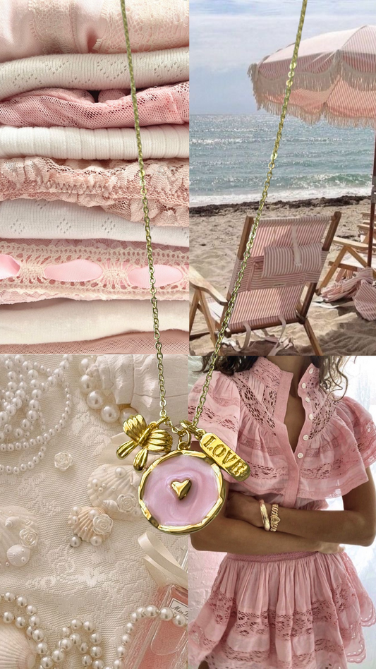 bow love dainty chain charm gold filled necklace