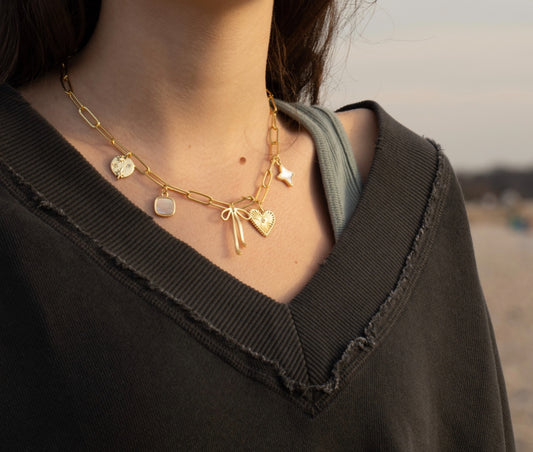 heart and sparkle charm gold filled necklace